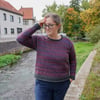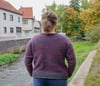 It is worked bottom-up for the body, in a front and back panel, with top-down sleeves. There is no waist shaping.