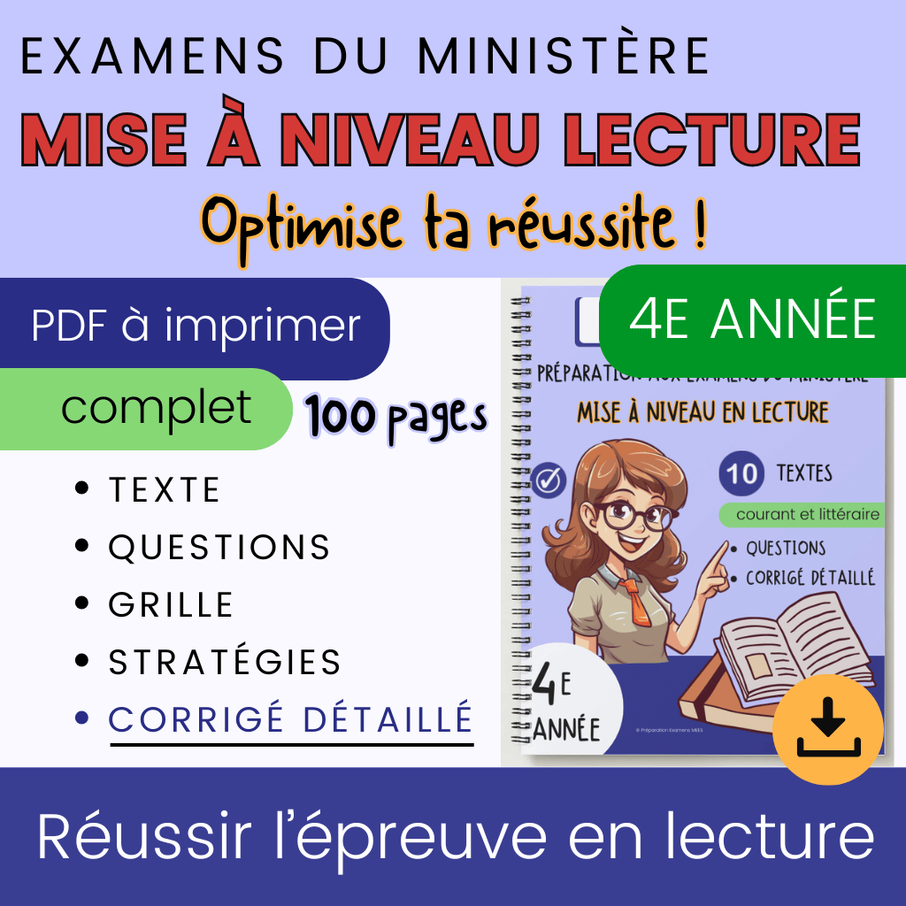 Préparation Examen MEES – Lecture 4e année | 10 textes d’entraînement + corrigés (PDF, 100 pages)