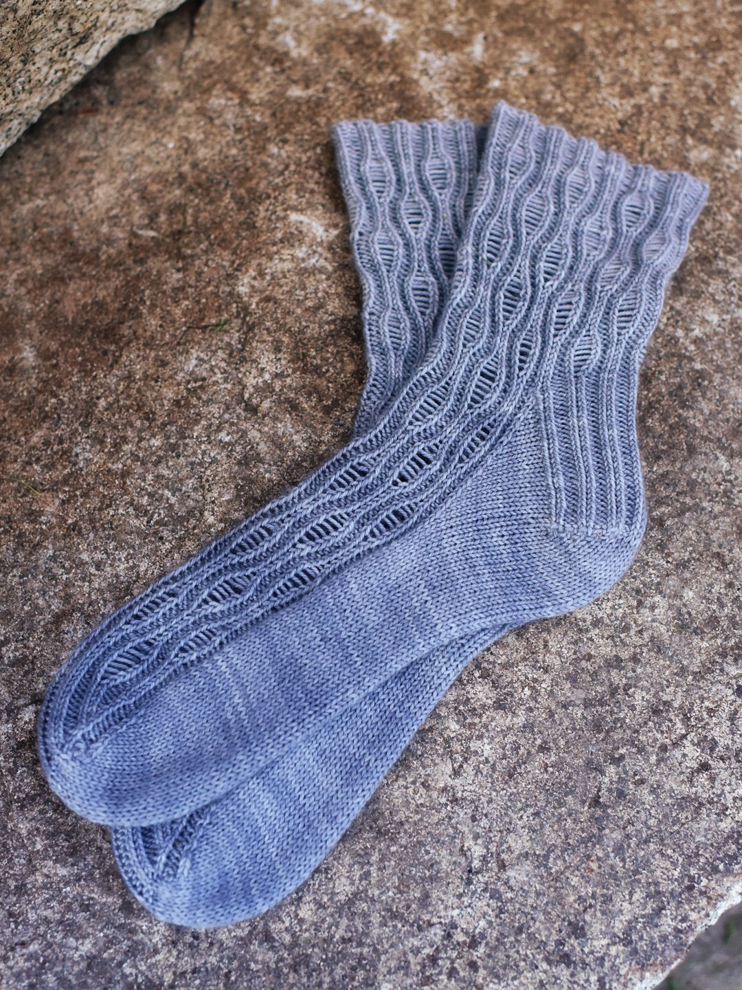 And I could be biased, but I think they're fast socks. The dropped stitches are super stretchy (so you'll probably be working over fewer stitches than you usually need), and I find them somehow motivating. I always want to knit just a few more rows so I can get to the next round where I drop a stitch. I'm sure it's a trick, but it totally works on me!