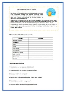 A reading comprehension on the topic of summer holidays in France.