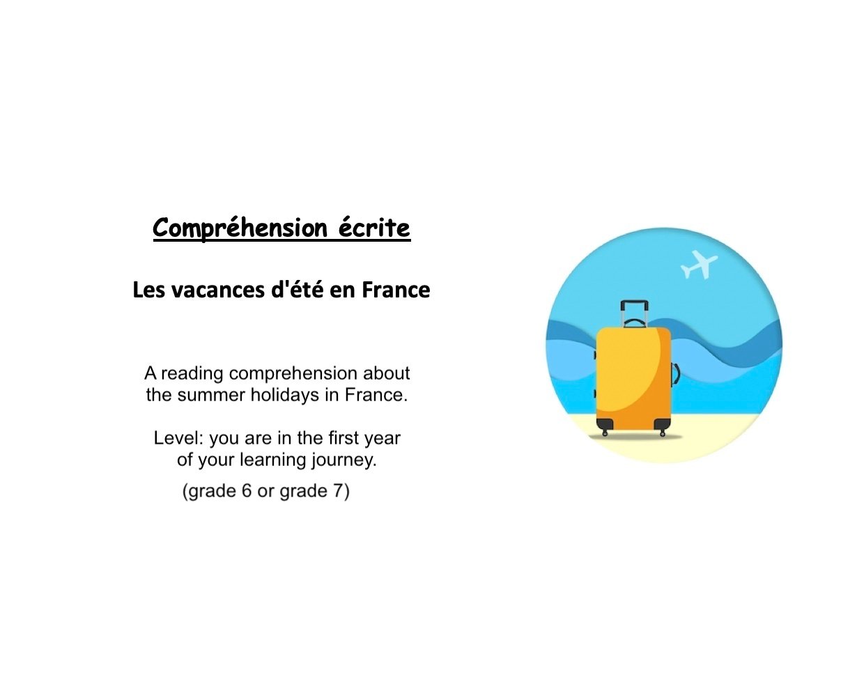 French reading grade 6 or 7: Les vacances (holidays)