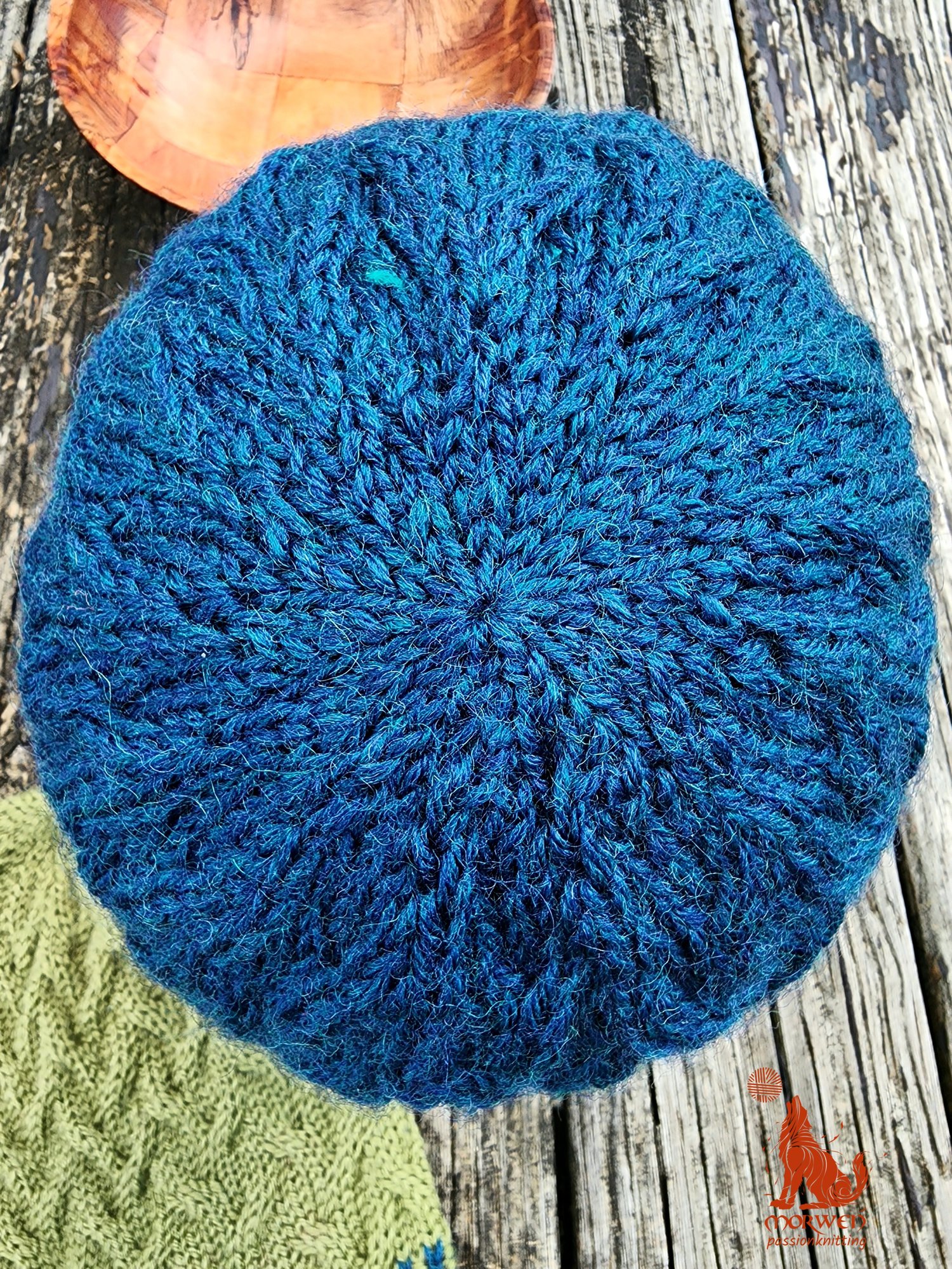 This beanie is a part of the accessories collection “New Grass’’. It’s worked in the round, bottom-up, starting with two-color/corrugated half-twisted ribbing 1х1, using left and right cross cables in the body to recreate a tender texture of sprouts of new spring grass. There are 2 sizes (Adult S-M, Adult L) and 2 lengths proposed (standard and long). The pattern is very friendly to beginners; it contains clear and full instructions and links to captioned video tutorials.