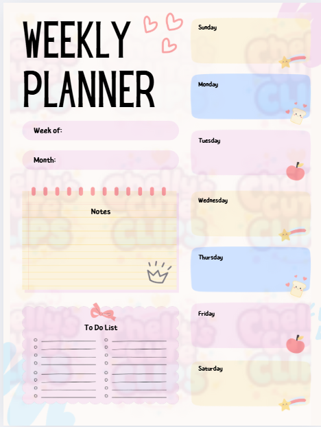 Plan your week the fun way with this Colorful Cute Illustrative Personal Weekly Planner! πβ¨