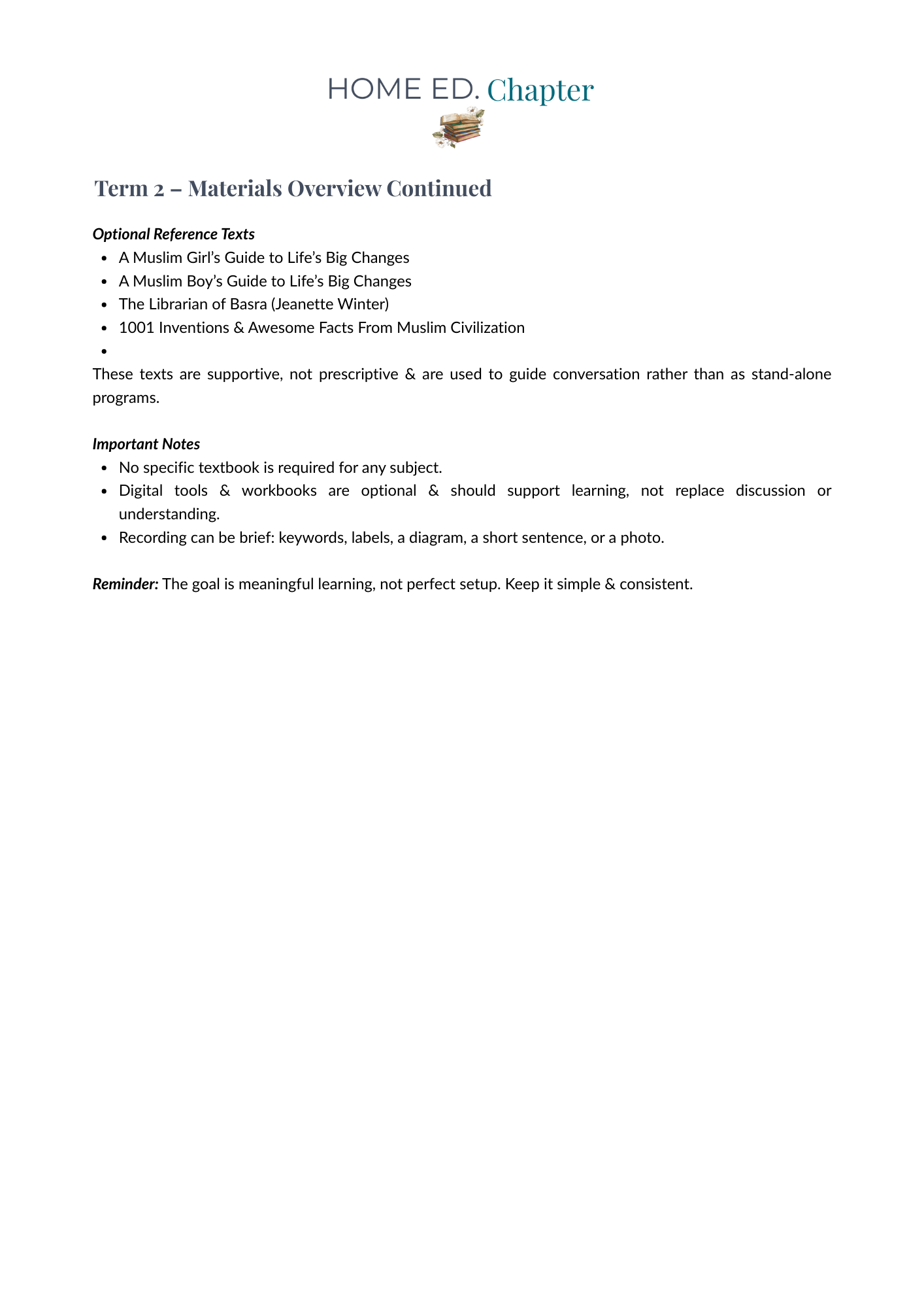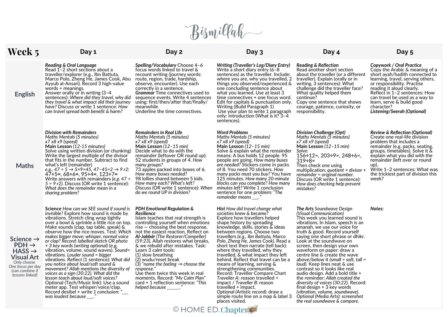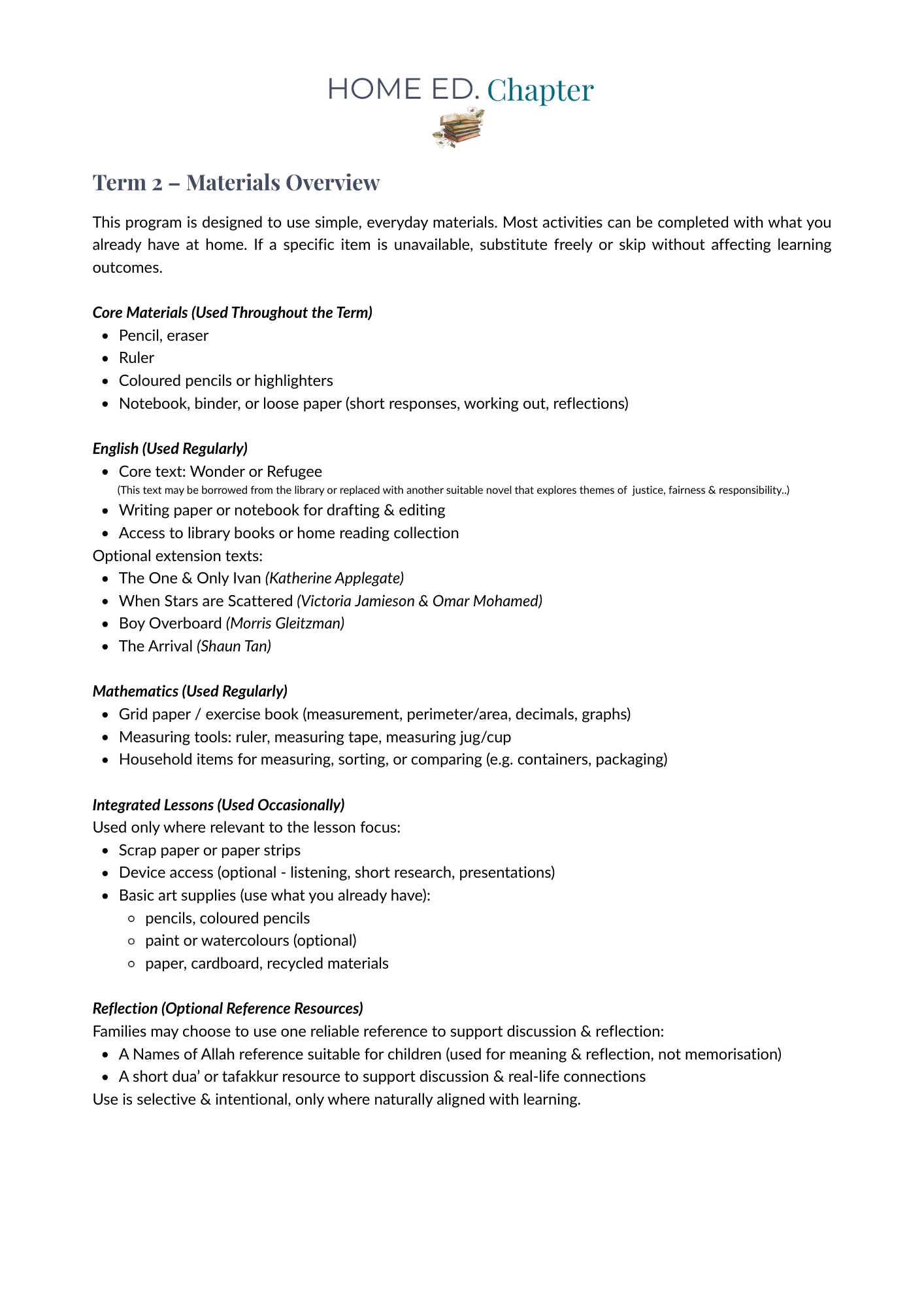 This is a complete, term-long learning program, not a worksheet pack or scripted curriculum. It supports parents in planning, delivering, assessing and recordkeeping across the term, while maintaining a calm pace that prioritises understanding, character development, and steady growth rather than content overload.