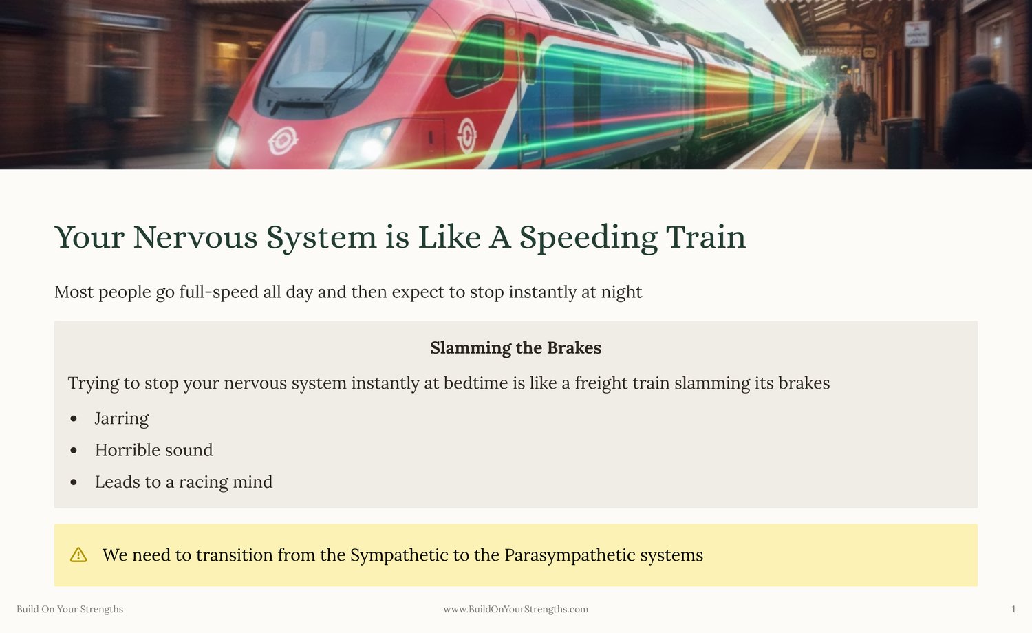 Your nervous system isn’t broken; it’s just overstimulated. Like a speeding train, it needs regular stops to slow down.