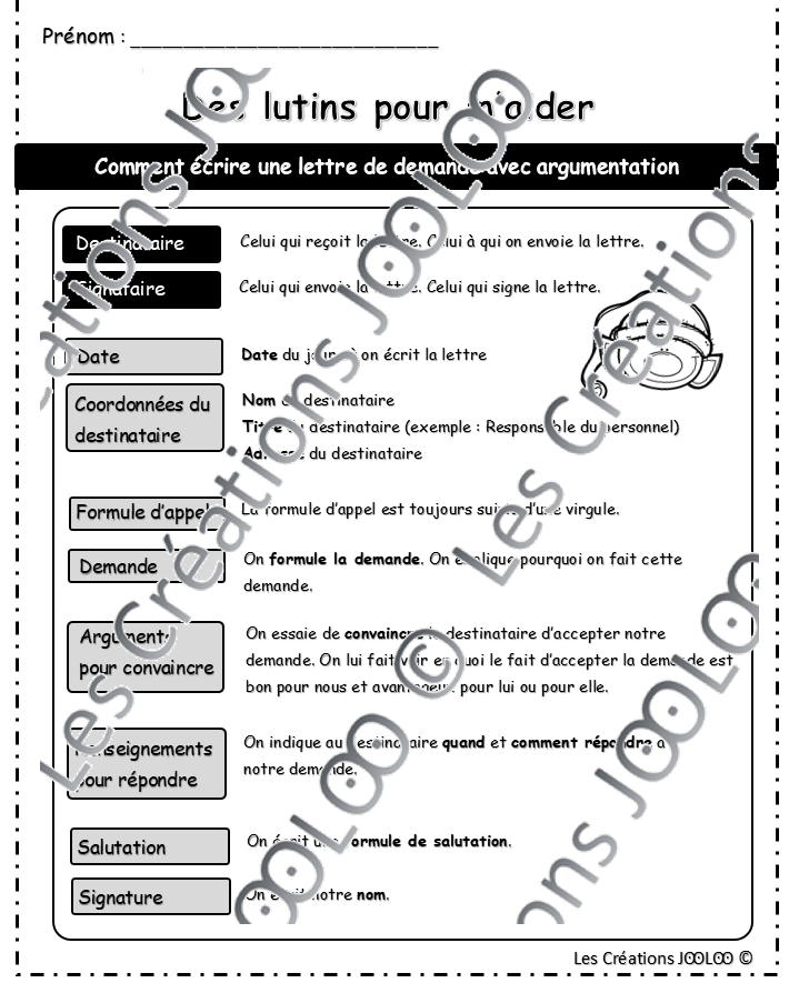 Texte argumentatif - Lettre de demande - Lutins