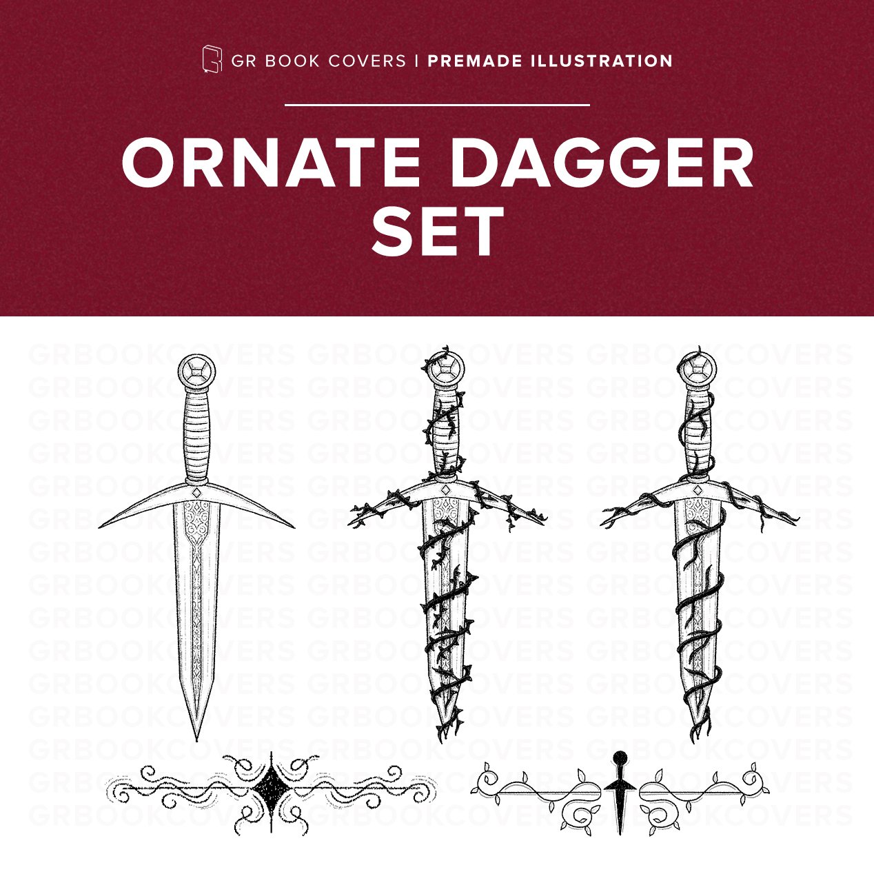Premade Illustration for Paperback and Ebook Formatting | Ornate Dagger Set
