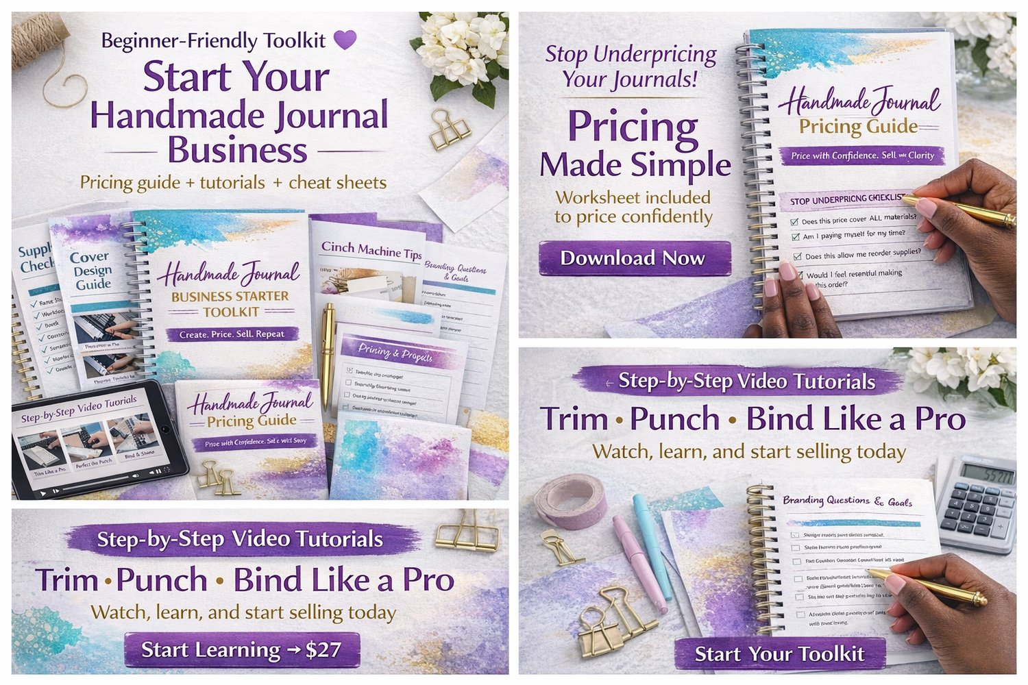 If you’ve been wanting to start a handmade journal business but felt overwhelmed, unsure, or stuck second-guessing every step—this toolkit was made for you.