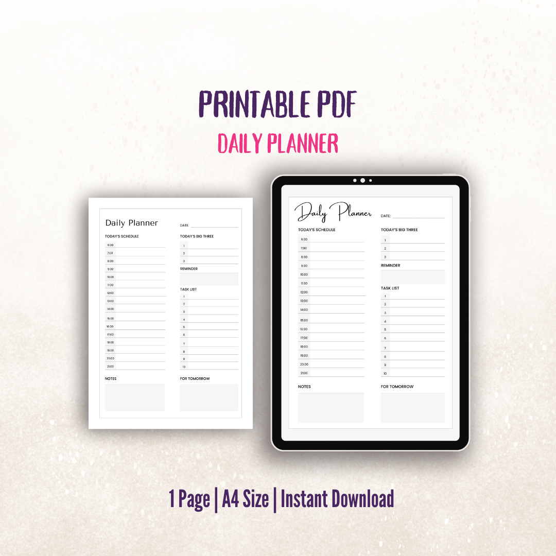 - 1 x Daily Planner Page (A4 size, PDF format)