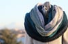 This oh-so-easy cowl is all about soft and squishy fiber, color, and the fade … up. If you are going to stash dive for this project (and it’s a great design to do just that), keep the following elements in mind, and you will easily create a winning, yet completely unique cowl all for your very self: all of the fiber used in the original has some amount of alpaca, they all relate to one color, and you need five different shades. However, if you have a gradient set, that will also work just fine.