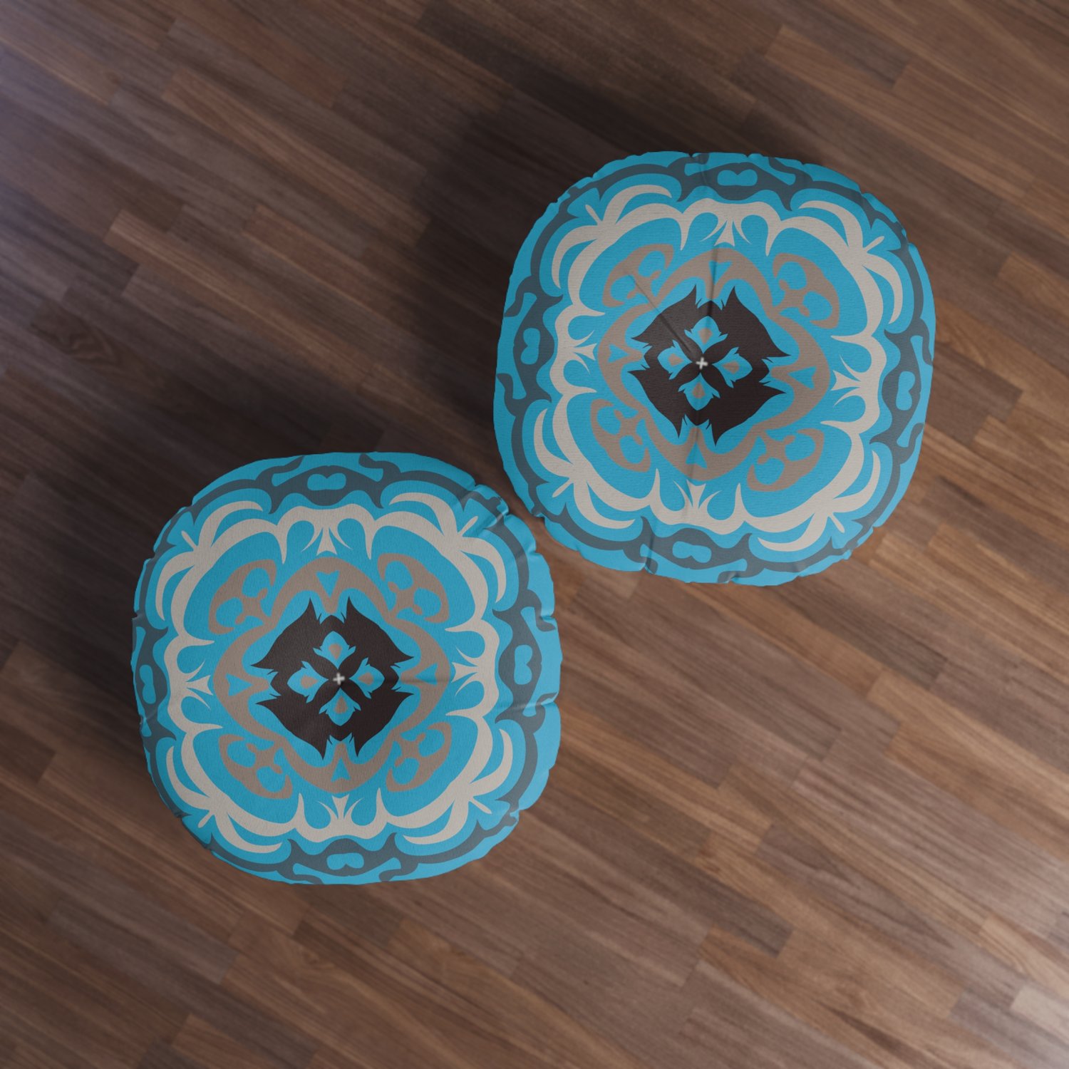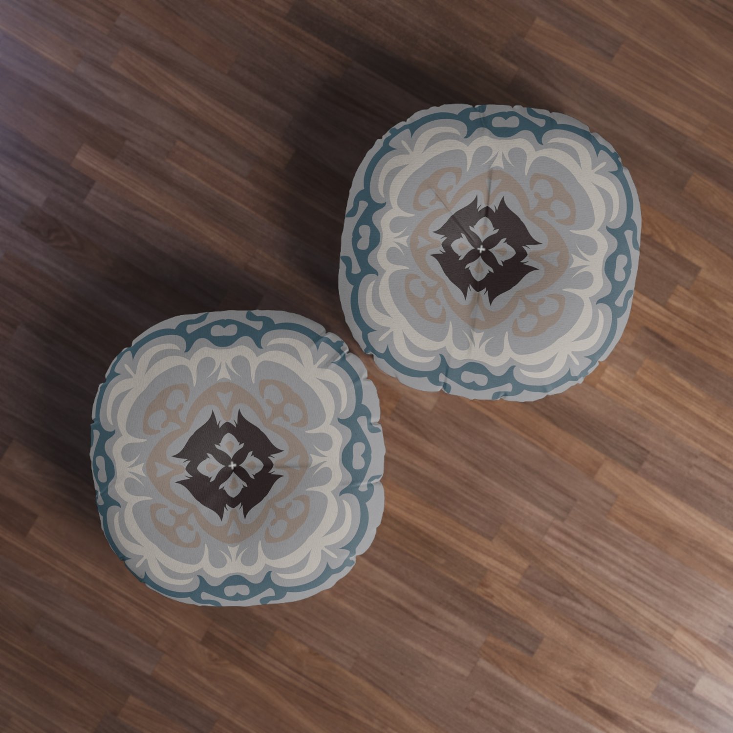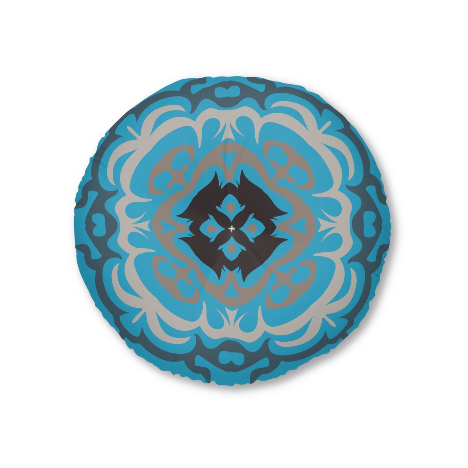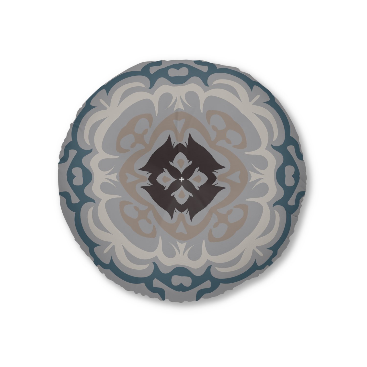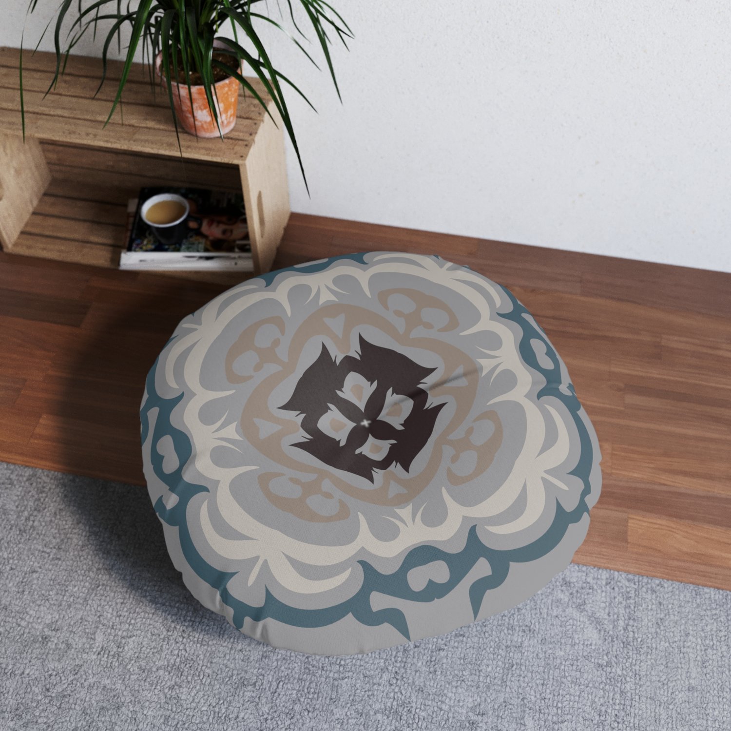 Add a custom touch to any resting area around the house with a round tufted floor pillow, which has a white stitching in the middle. Shipped with its own filling, this floor pillow is as comfy as it is stylish.