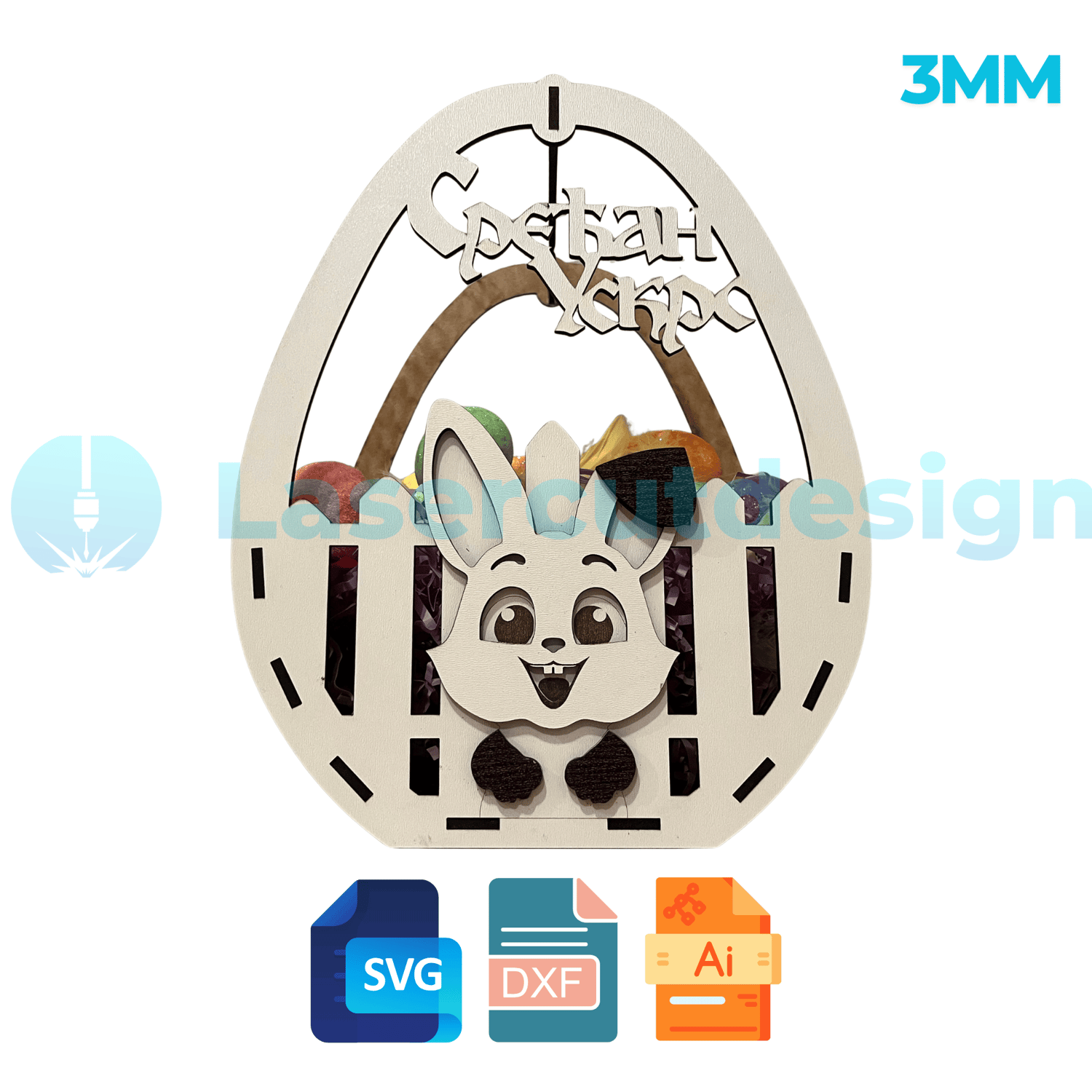 Easter Egg Basket - Bunny - Srecan Uskrs - Files For Laser Cutting, SVG,DXF,AI Files, Laser Cut Pattern 3mm