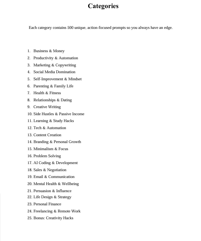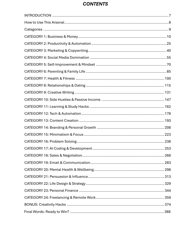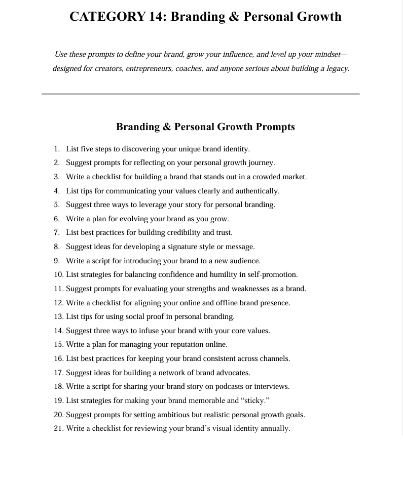 - Action-ready design – no fluff, no theory, just prompts you can use today.