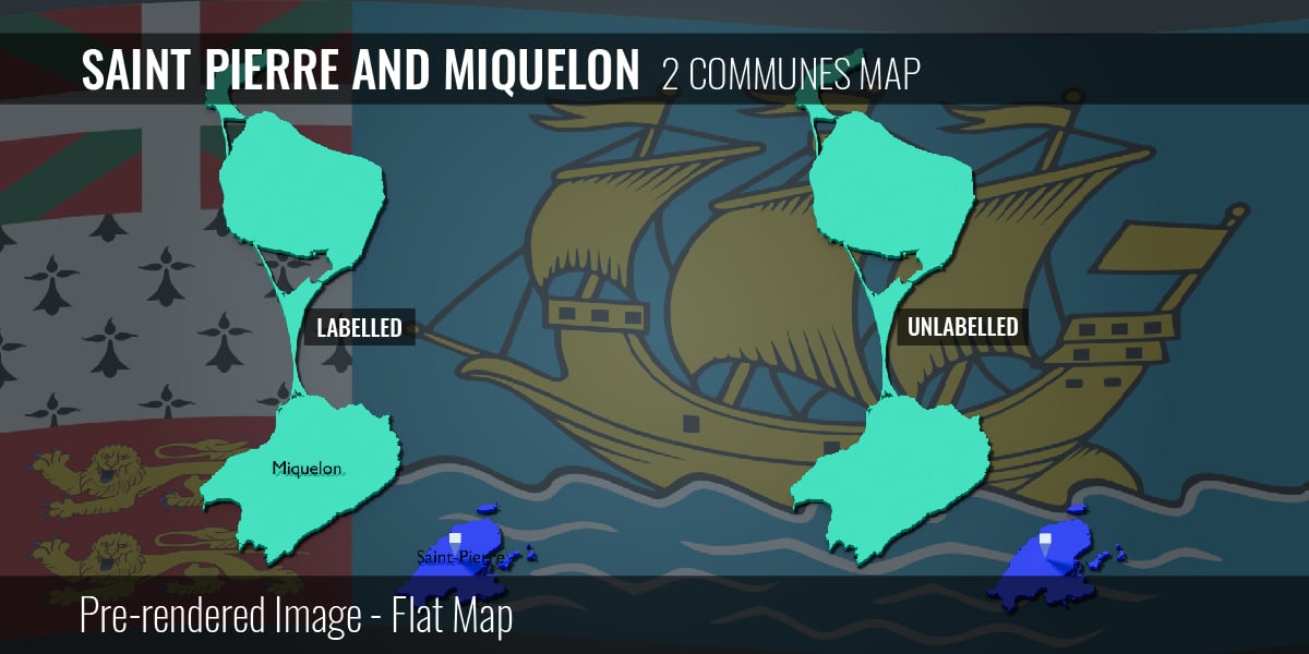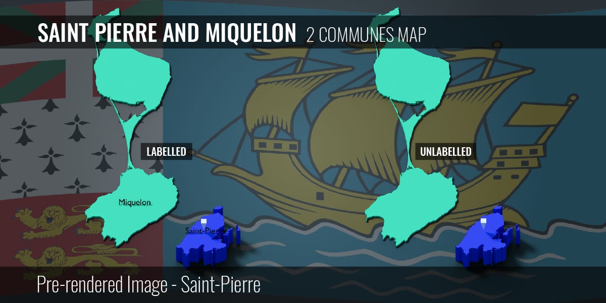 Saint Pierre and Miquelon - 2 Communes Map (3D + Pre-rendered Images)