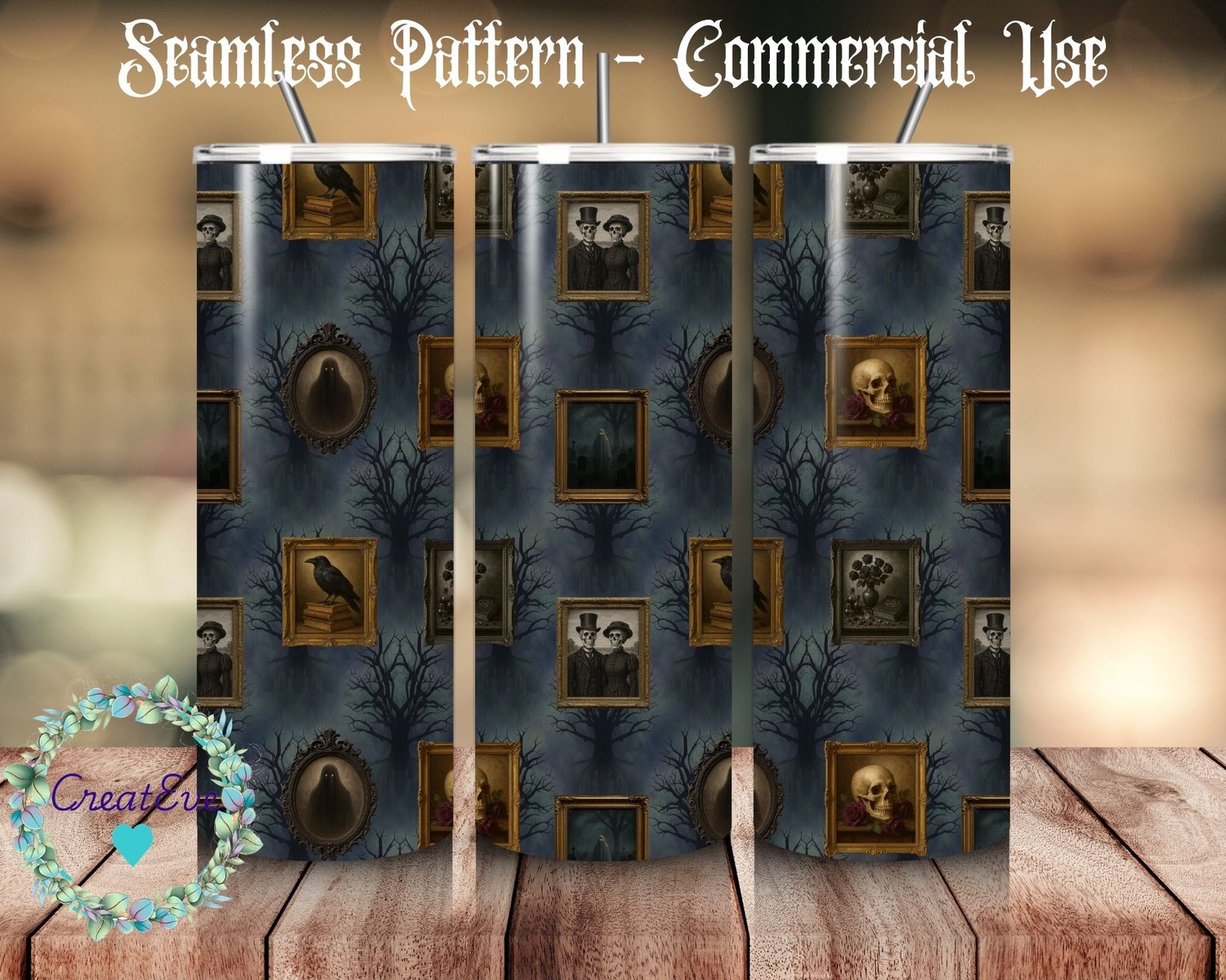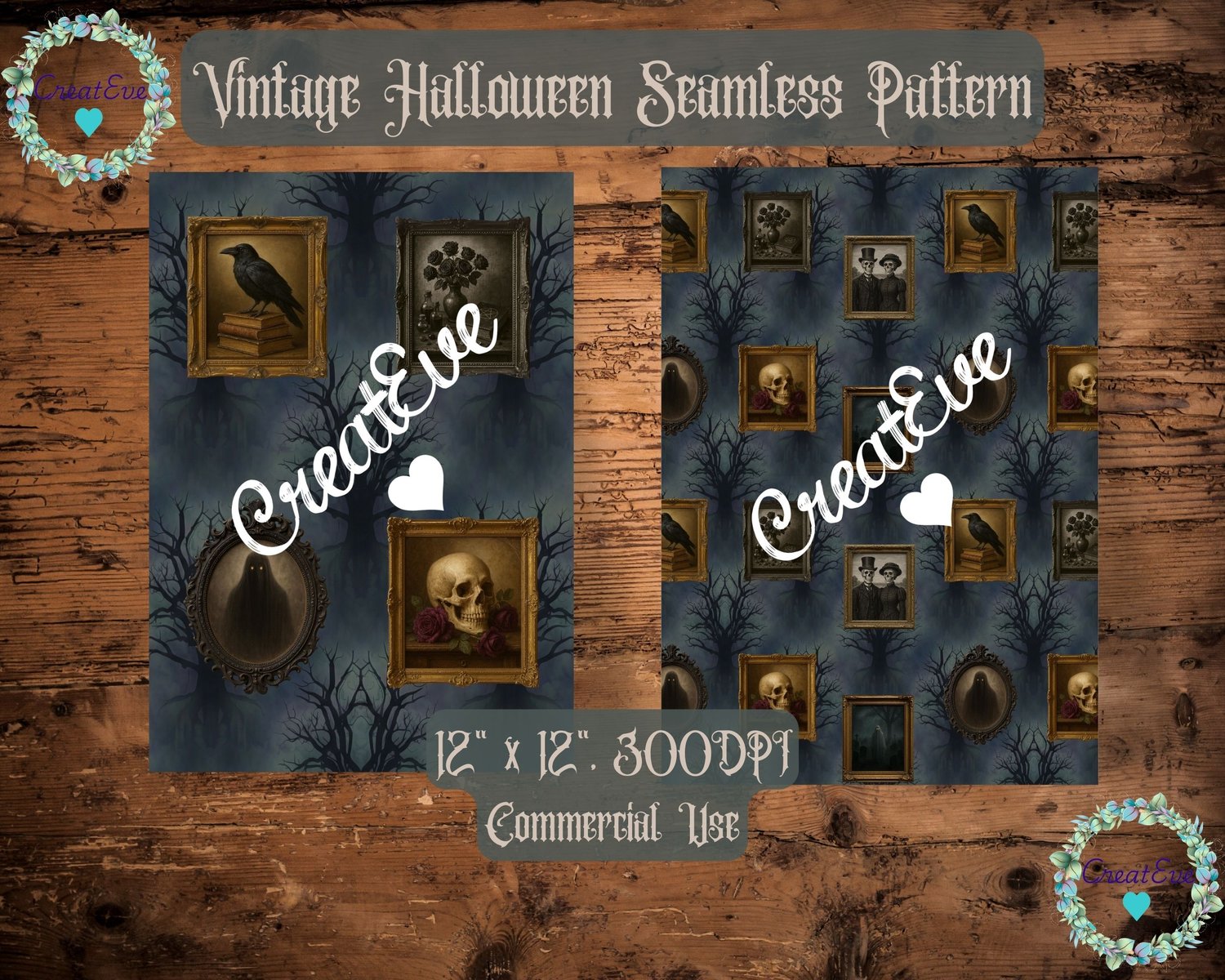 Vintage Halloween Seamless Pattern PNG 12"x12" Commercial Use