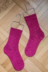 • Size – Socks are sized in a Small (Medium/Large). Sizes are based on foot circumference and not length as you knit the sock as long as you need to in order to fit the recipient. Please also note that socks need to have about 1-2 inches (2.5-5cm) of negative ease in order to provide a nice snug fit around the foot without being too baggy. Further, socks will loosen up over time and with wear so personally I prefer a nice snug fit at the start to reduce this effect later.