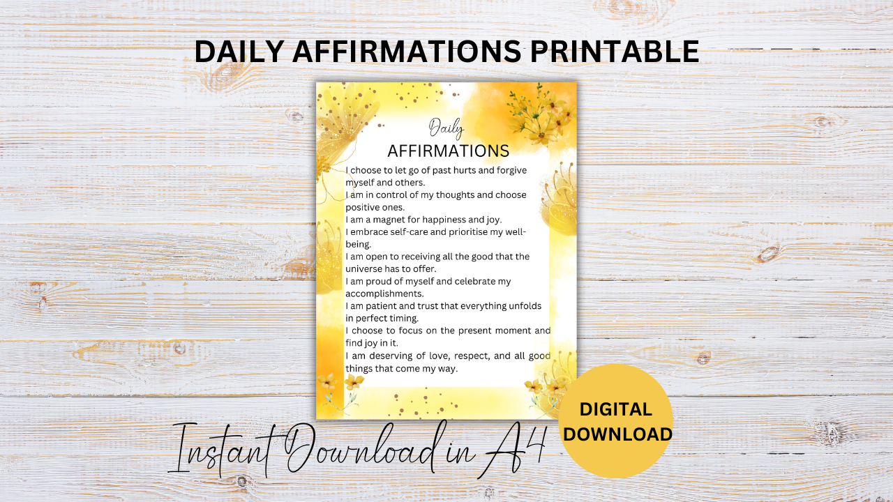 We are introducing our Daily Affirmations Printable. This beautifully crafted printable provides a collection of carefully curated affirmations to infuse your day with positivity, inspiration, and self-belief.