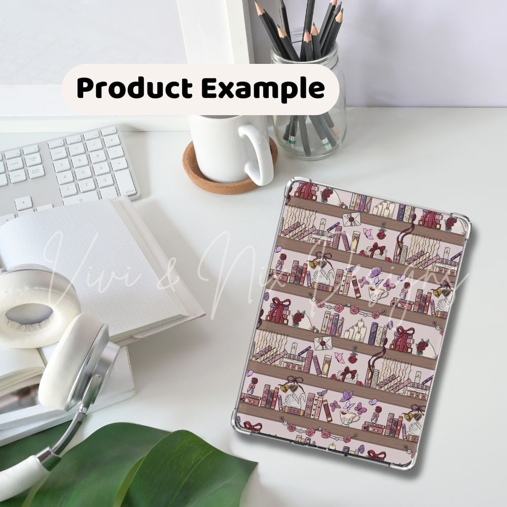 Romantic Bookshelf Seamless Pattern, Valentine Bookish Digital Paper Pink Cottagecore Shelf PNG, Soft Romance