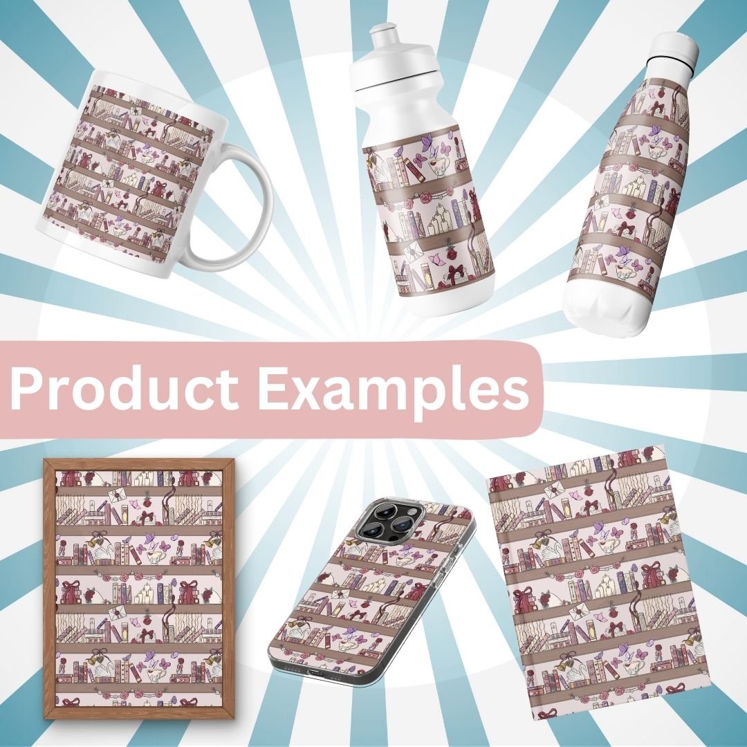 Bring cozy romance and bookish charm to your designs with this hand-drawn romantic bookshelf seamless pattern.