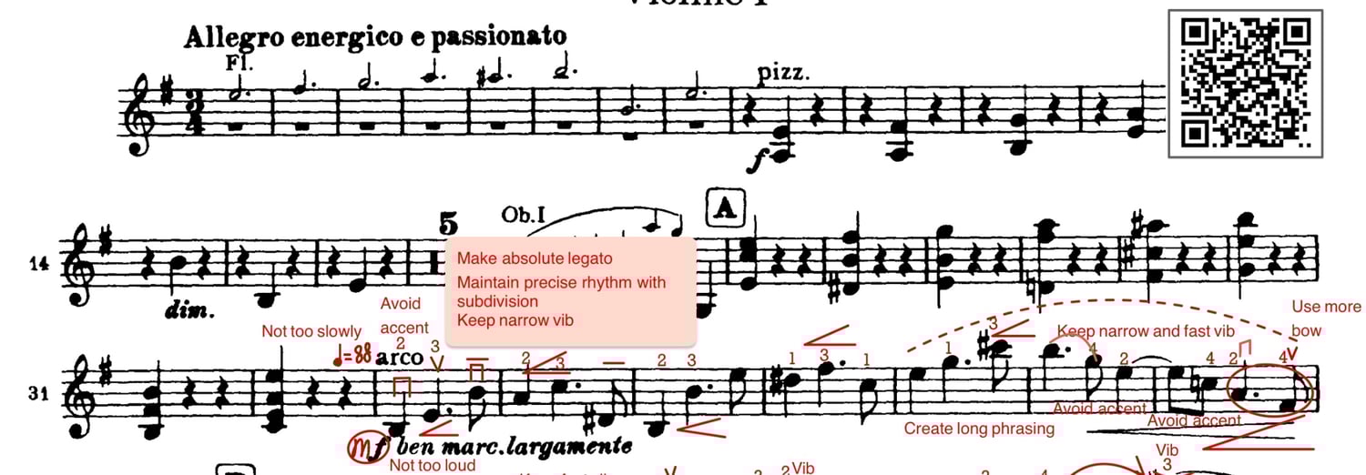 Each excerpt includes my personal bowings, fingerings, phrasing, musical ideas, audition tips, and practice strategies — refined through years of performing and auditioning with top orchestras.