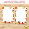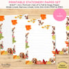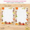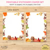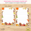 Set of 4 Printable Stationery Note Paper, Autumn Fall and Dogs Lined Paper
