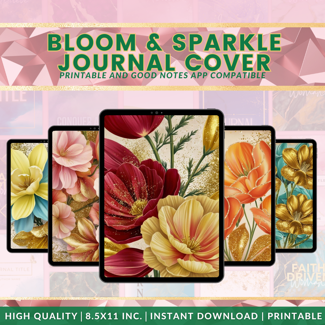 Immerse in creativity with our Bloom and Sparkle Journal Cover, designed for compatibility with the Goodnotes app. Fully editable and thoughtfully designed in an 8.5x11 in format, these covers seamlessly fuse artistic expression with practicality.