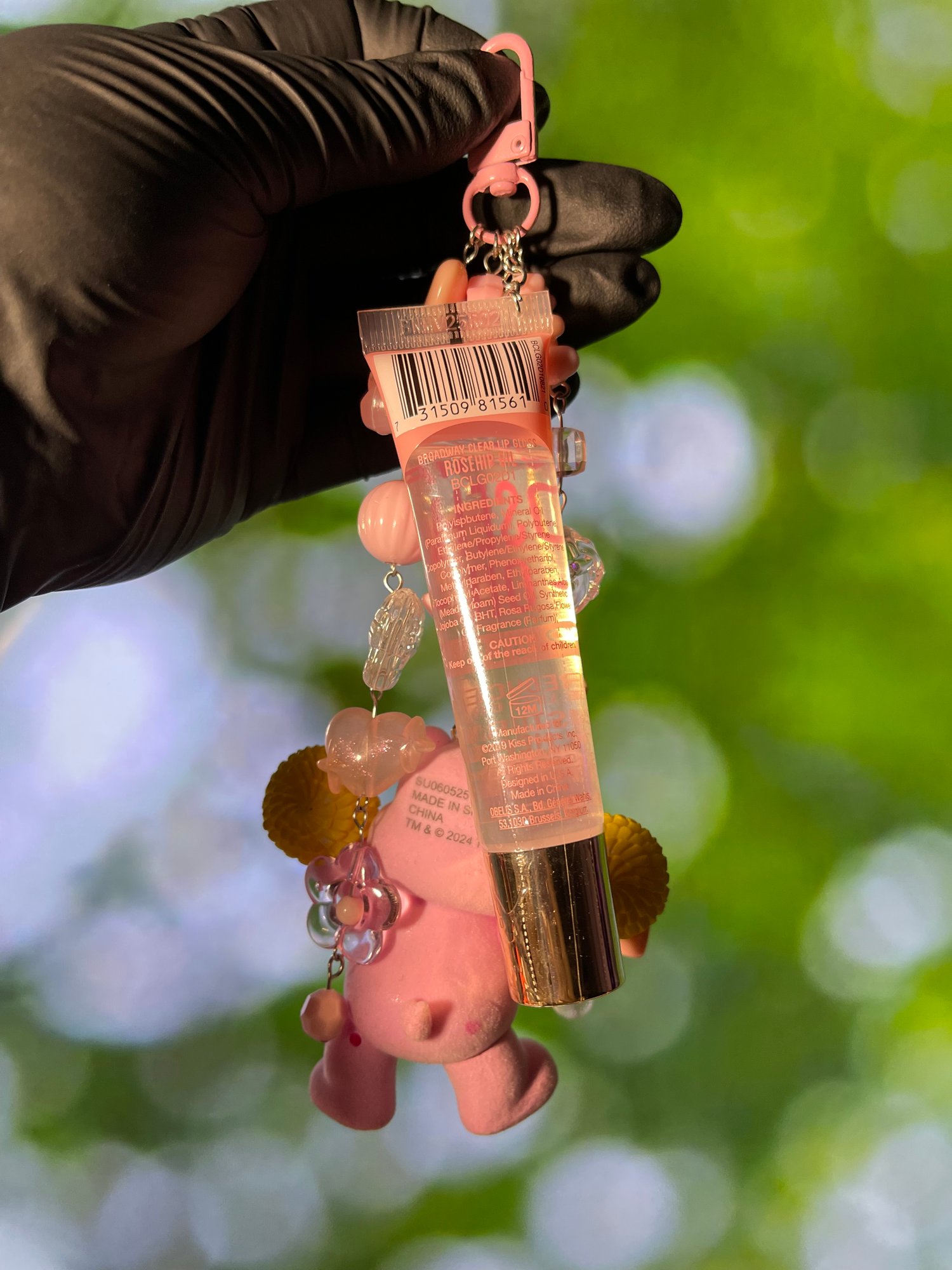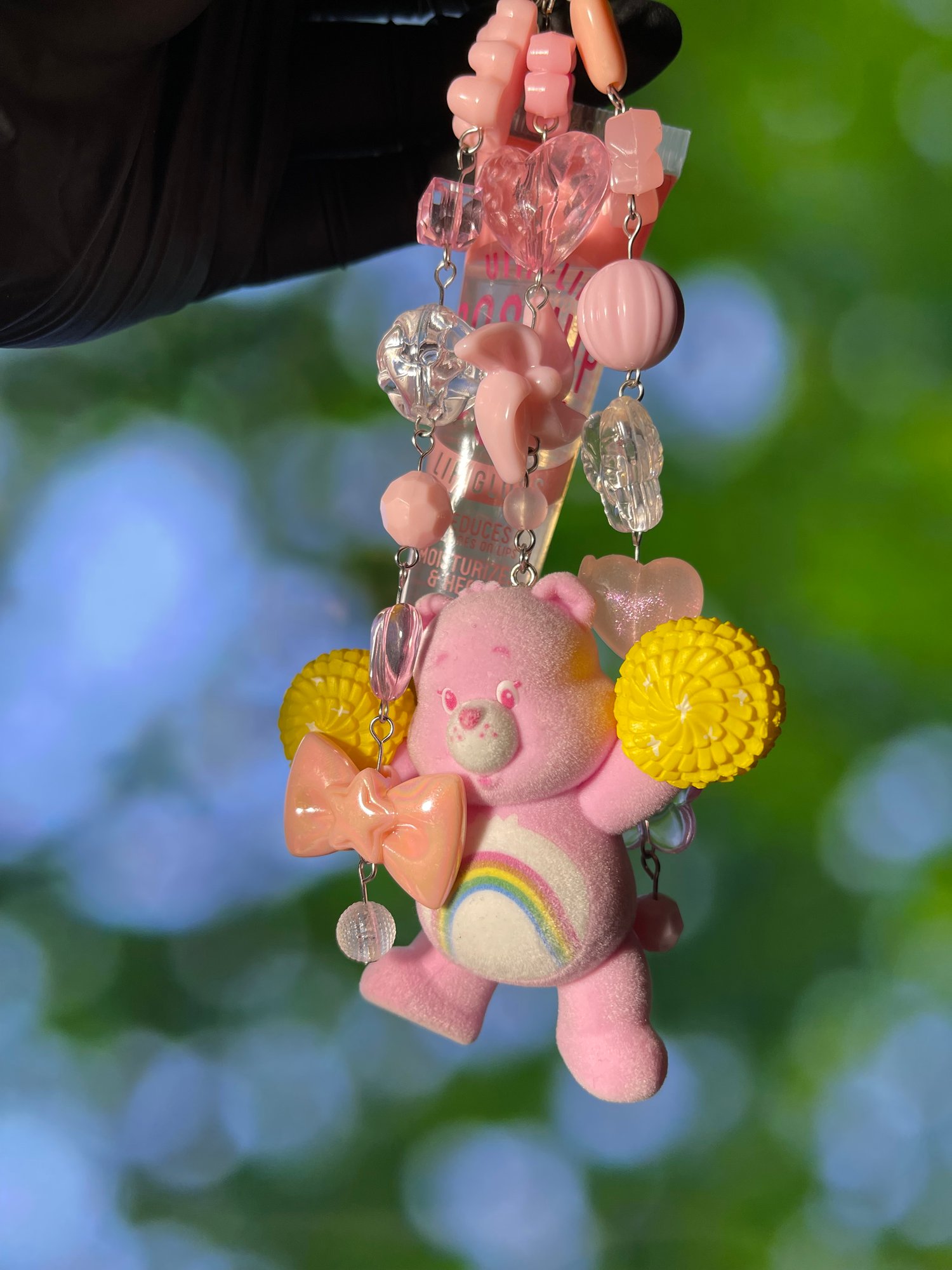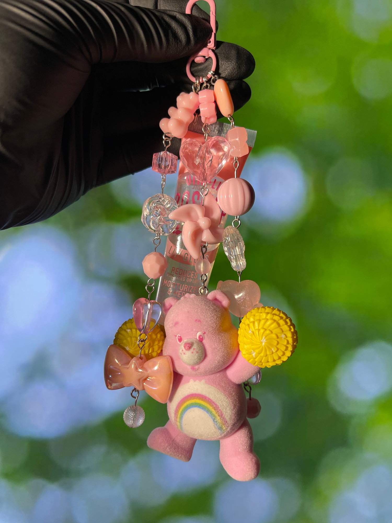 Care Bear's Cheer Bear Pink Junk Keychain With Sealed Lip Gloss add-on.