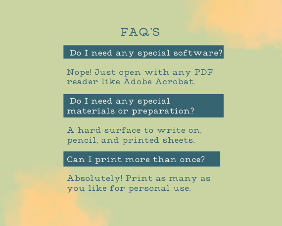This digital product is for personal use only. You may print and use it as many times as needed for your own family. Redistribution, reselling, or sharing of the file (or printed copies) for commercial use is not permitted. Thank you for supporting small creators!