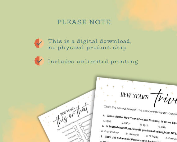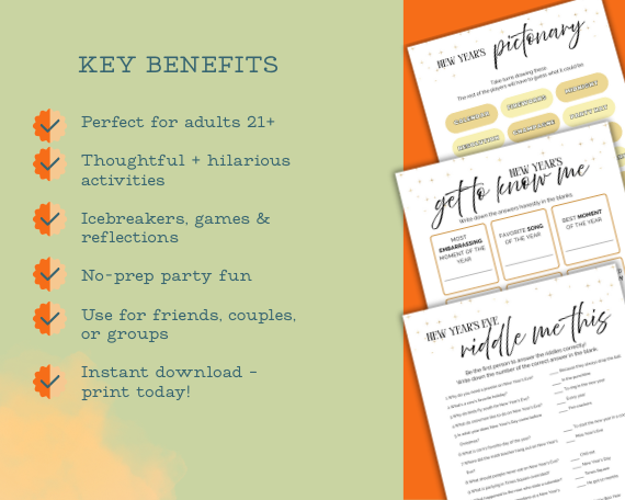 Host your most memorable NYE party yet with this New Year’s Eve Adult Party Games & Activities Pack! 🍾
