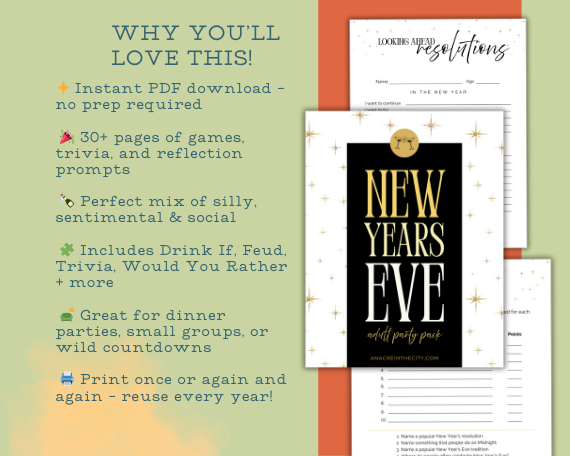 Whether you're throwing a cozy night in or a full-blown countdown bash, this printable bundle is packed with hilarious games, thoughtful reflections, and icebreakers that get everyone talking, laughing, and connecting.