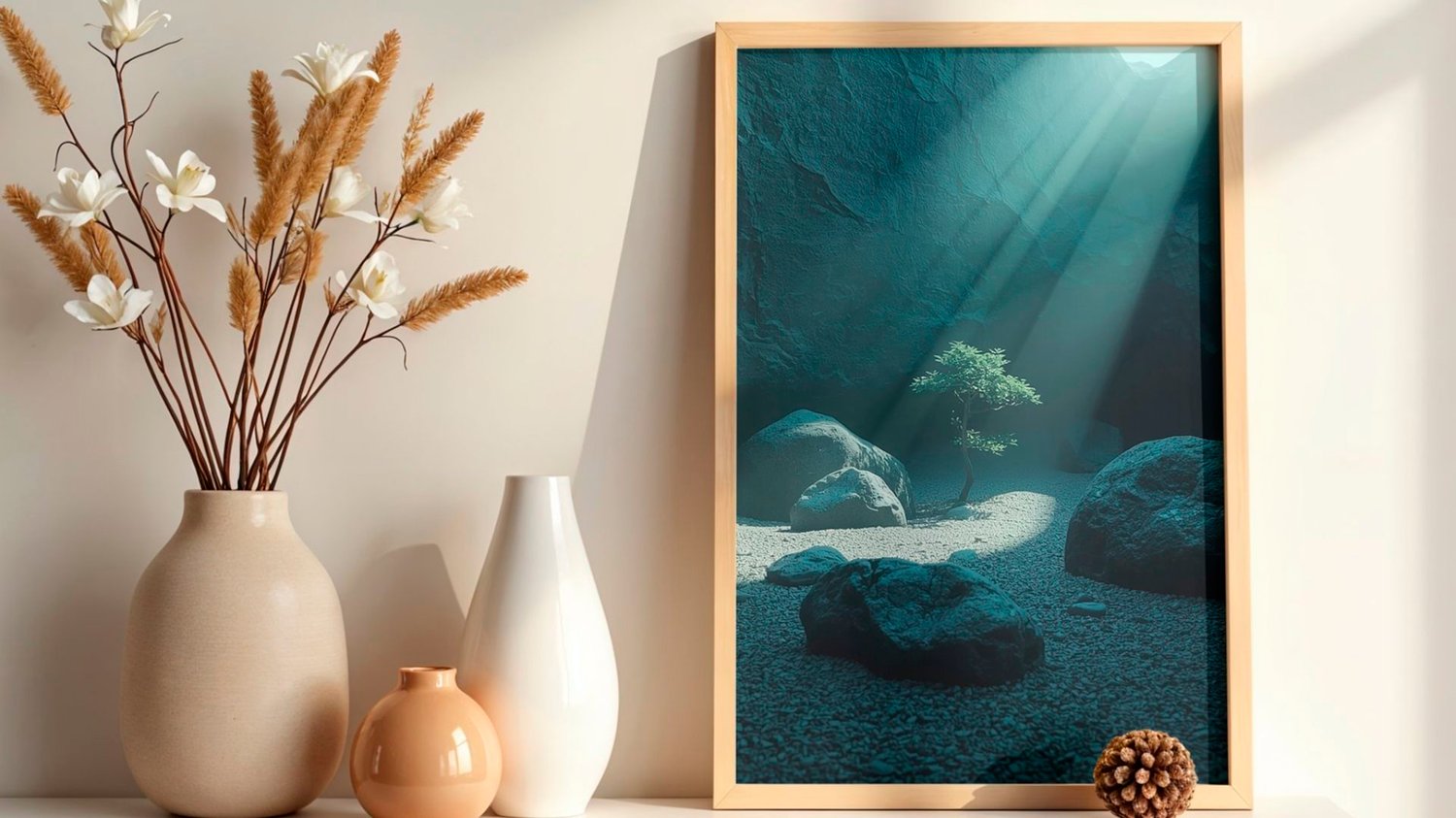 Bring peace to your space with this Zen Rock Garden poster. Ideal for meditation rooms, offices, and bedrooms. The high-resolution digital download offers minimalistic design, soft ambient light, and tranquil atmosphere.