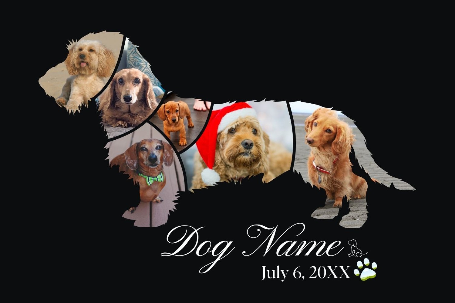 Dachshund (wiener dog) Memorial Photo Collage Canva Frame | Pet Remembrance Silhouette