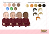 three different skin tones, three eye colours and five hair colours)