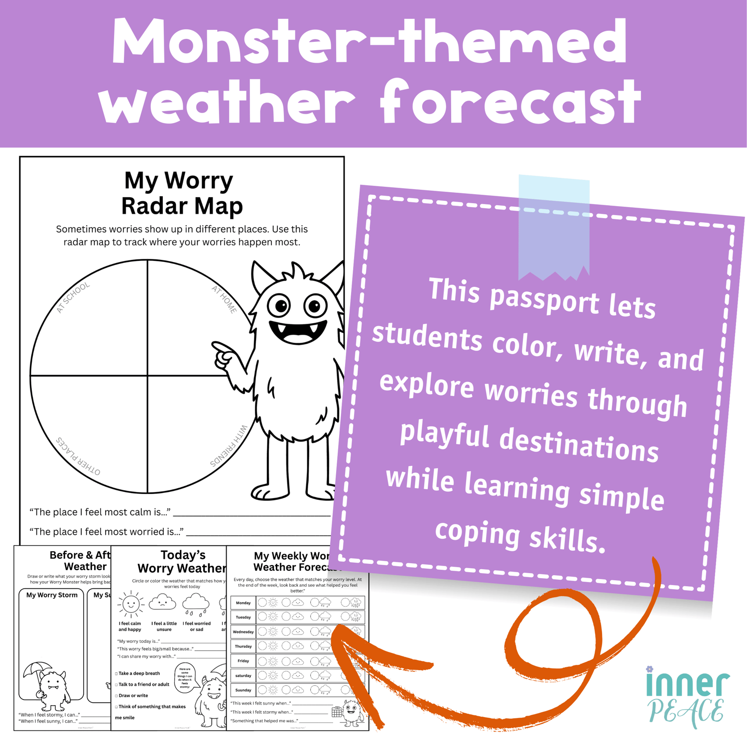 Worry Monster Forecast Counseling SEL Worksheet Social Emotional Learning Activities