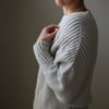 Perfectly toeing the line between stylish and comfortable, Snow Cloud is a cozy dolman sweater with a flattering boat neck and ribbed yoke. It’s knit from the top down in one piece, which makes it a perfect project for beginners and a quick knit for anyone.