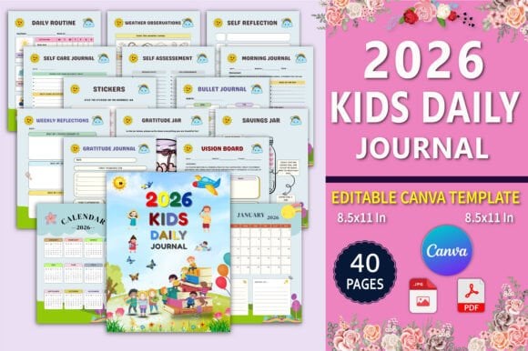 Make 2026 the most magical year for your child with this Kids Daily Journal! Designed to inspire creativity, gratitude, and self-expression, this fun and colorful journal encourages kids to write, doodle, and reflect every day. Each page includes space for daily thoughts, moods, and little wins—helping children build confidence, mindfulness, and a positive mindset. Perfect for ages 6–12, this journal makes writing fun and meaningful all year long