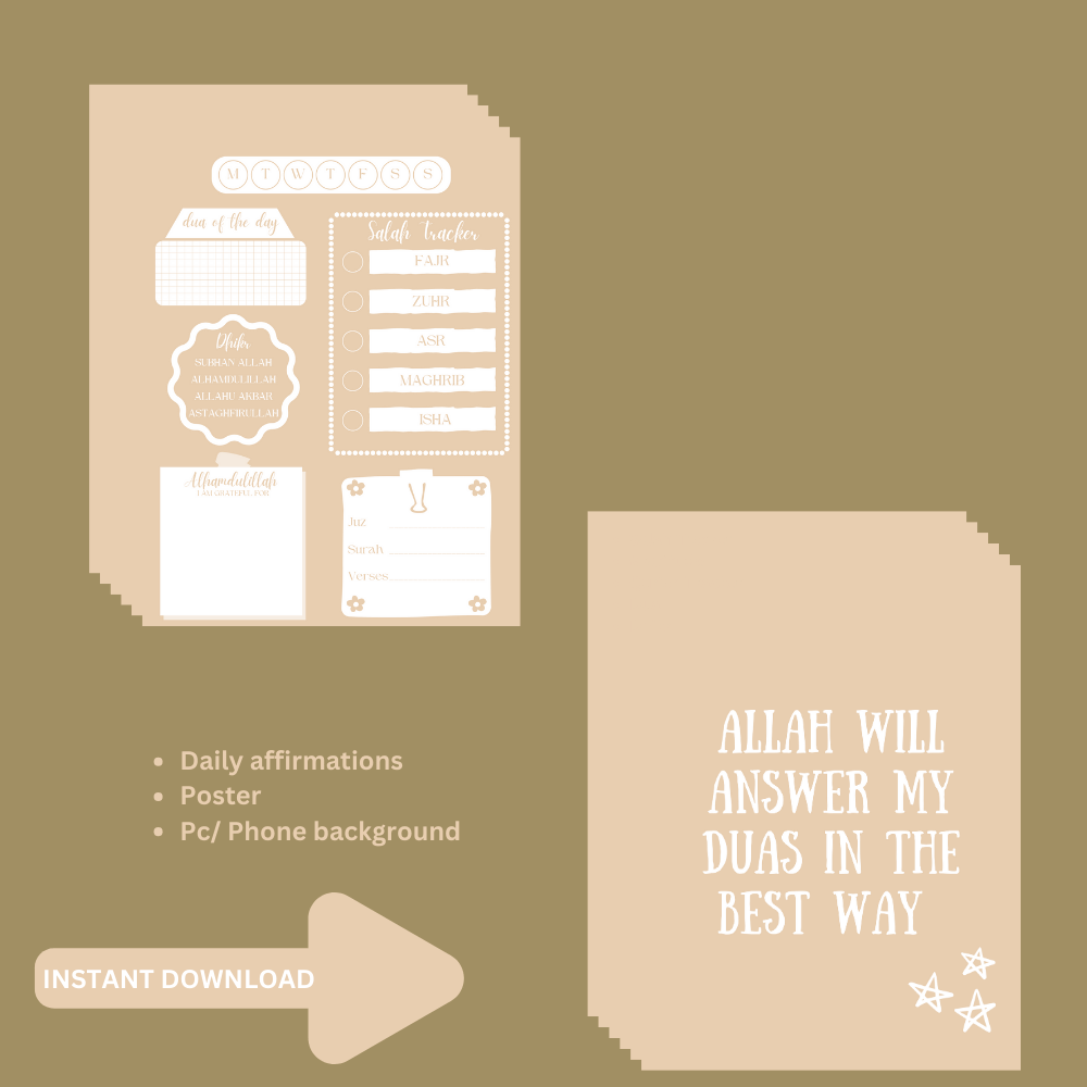 Prioritising Islam in your life is the foundation of every effective routine. Introducing our Ramadan Bundle, expertly designed to appeal to the Muslim lifestyle. By incorporating Islamic traditions into your everyday routine, this calendar will help you stay organised, focused, and profoundly connected to Allah.