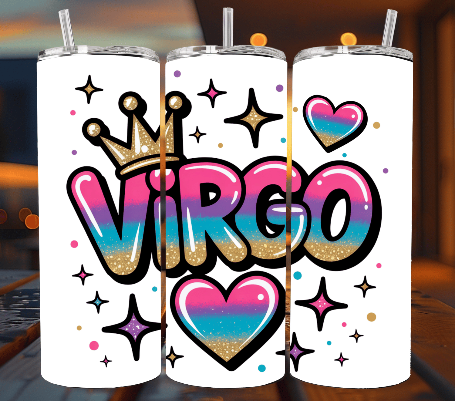 This Virgo crown tumbler wrap PNG is perfect for astrology lovers and zodiac birthday gifts. Use it for shirts, mugs, tumblers, sublimation projects, party favors, or Virgo season decor. A fun, vibrant digital design for crafters and astrology fans.