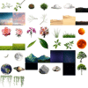 - 2 of each: branch, bush, cloud, sky, dead branch, desert, flower, grass, field, leaf, moon, mountain, planet, rain, rock, snow, soil, sun, tree, and vine