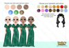 Instant digital download of our Peacock Green Bridesmaid/Formal Dress Dolly Character and Clipart Bundle PNG (28 PNG’s)