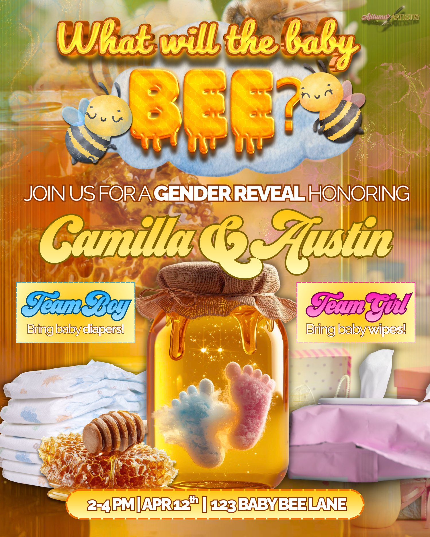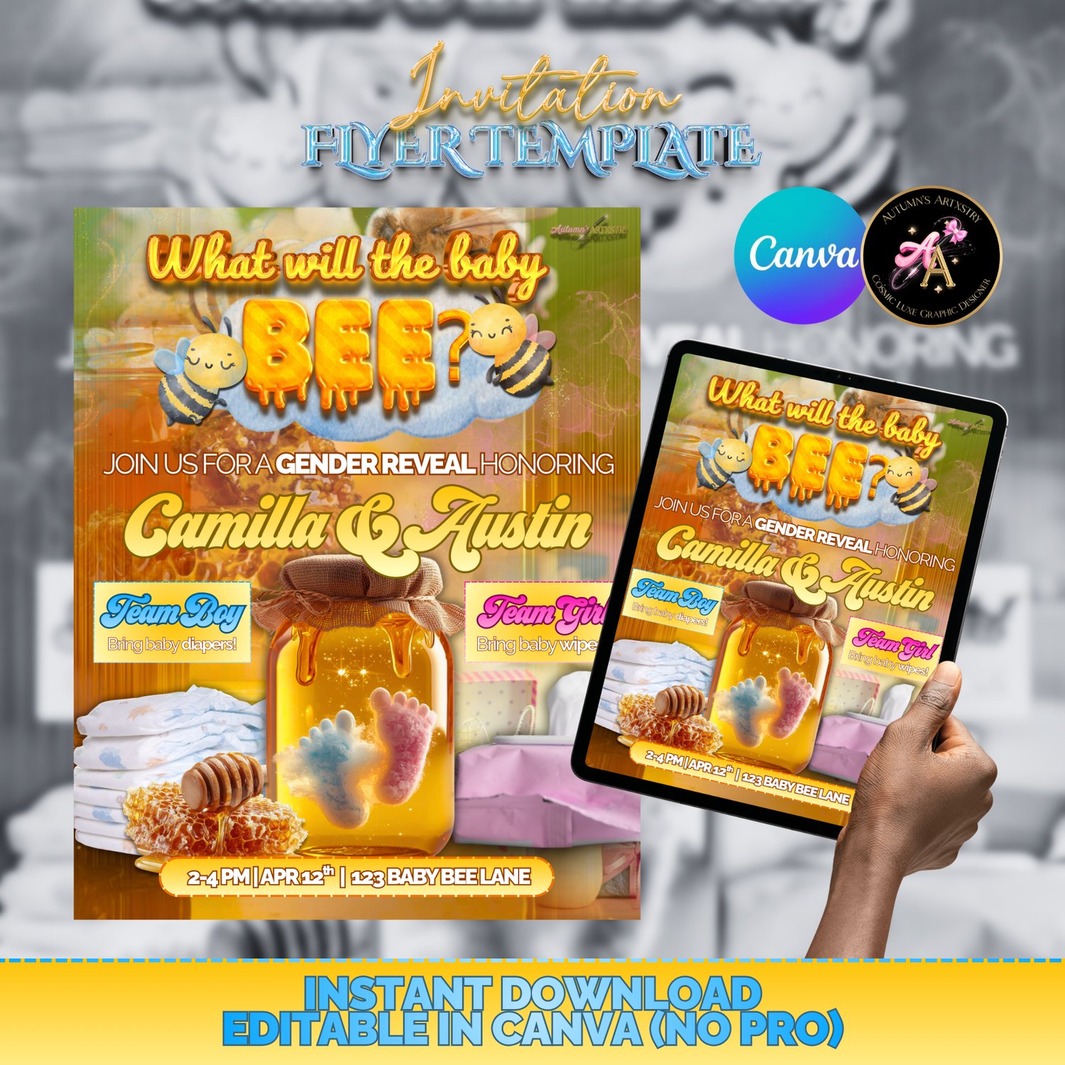 Bee Gender Reveal Invitation Canva Template | Honey Baby Shower Invite | What Will The Baby Bee Editable Template