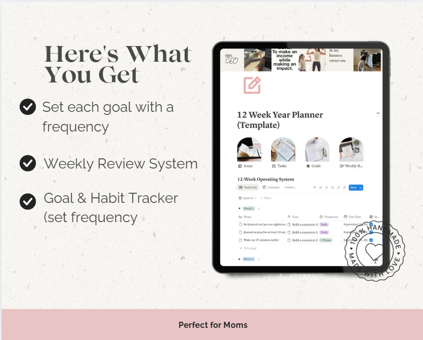 Be More Productive in 12 Weeks — A Mom-Friendly Notion Planner That Works While Life Happens