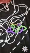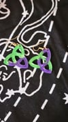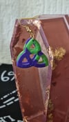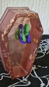 Each earring features a stunning metallic green and purple swirl resin pendant, reminiscent of enchanted potions and spellbound skies. Inspired by the iconic energy of Charmed and the power of personal symbols, this drop design shimmers and shifts in the light, catching every gaze.