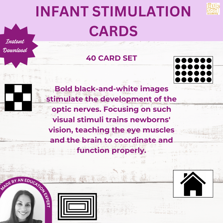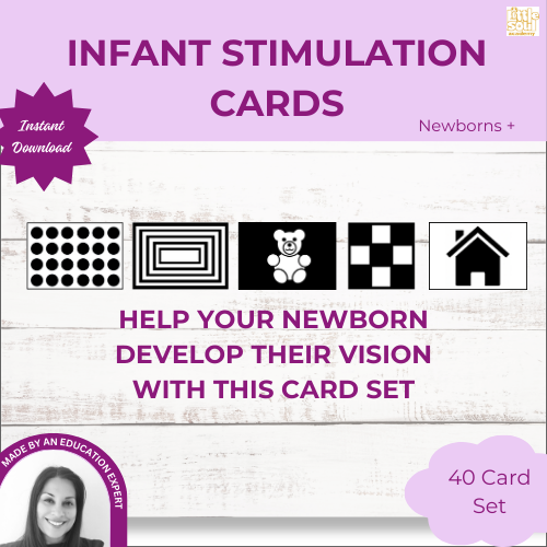 These infant stimulation cards are a great way to stimulate vision, brain development, increase concentration and invite curiosity as they build new brain connections.