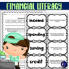 Financial terms students will learn are: income, spending, saving, credit, refund, charitable giving, tip, gratuity, and profit.