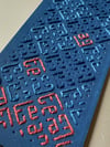 In the Fourth Veil, the red of حياة "Life" creeps back organically into the pattern of mourning as Life reasserts itself.