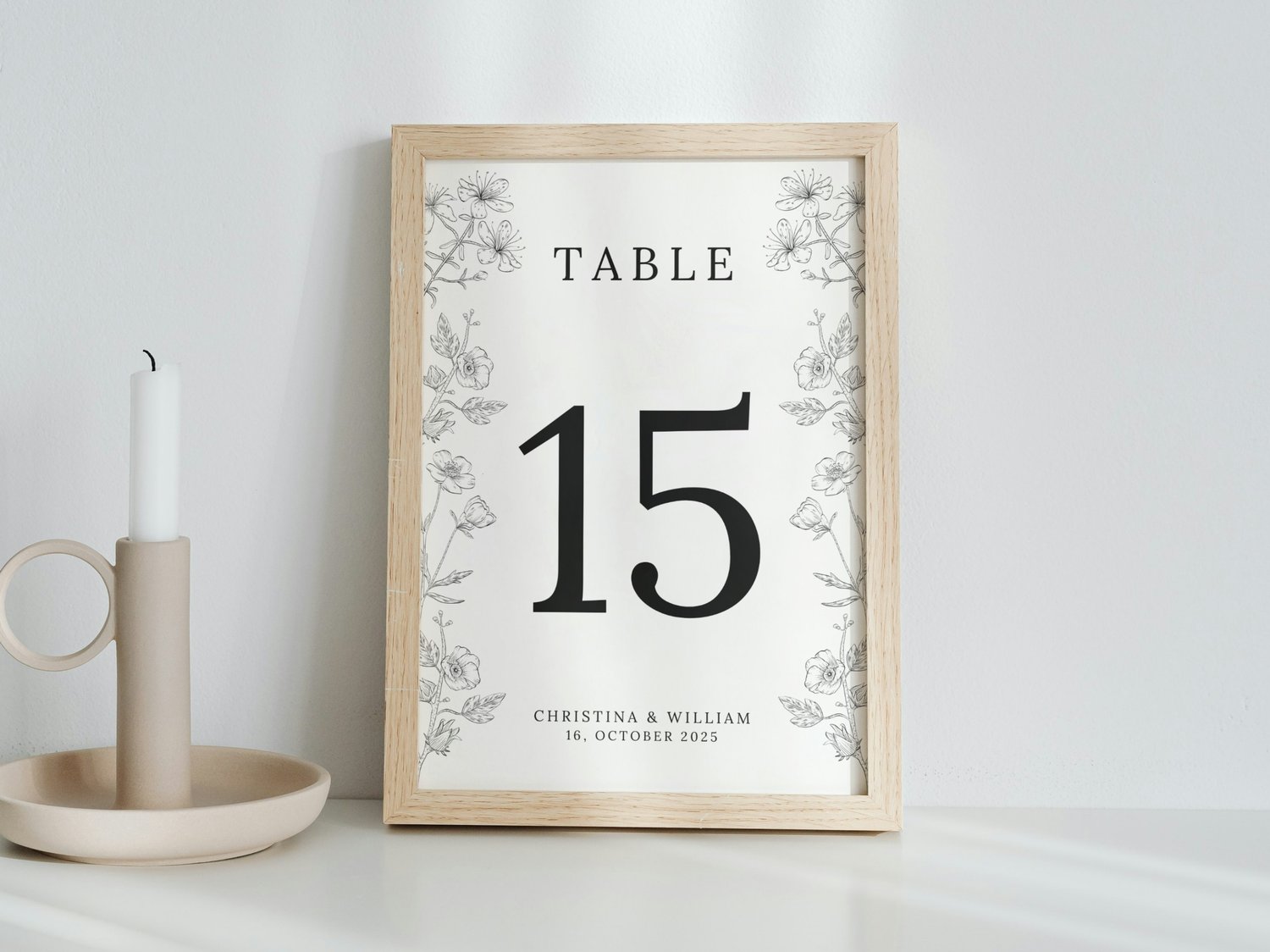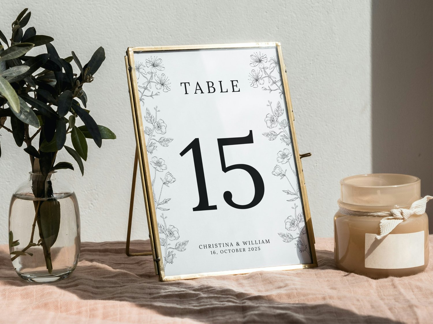 This floral wedding table number card features a charming wildflower theme, perfect for adding a natural touch to your reception. The printable and fully editable design helps organize guest seating while enhancing your wedding table setting.