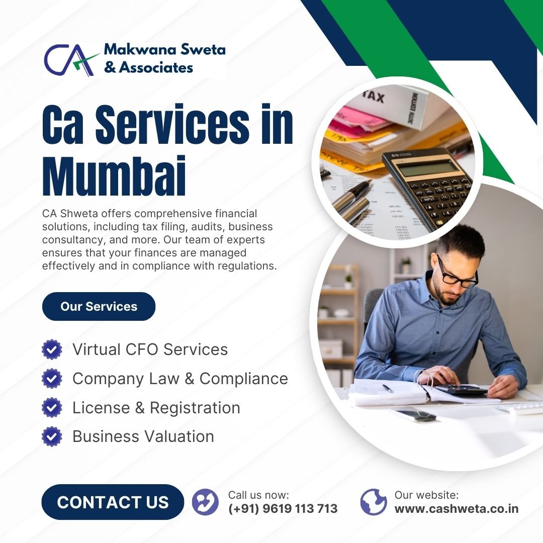 Looking for reliable CA services in Mumbai? CA Shweta offers comprehensive financial solutions, including tax filing, audits, business consultancy, and more. Our team of experts ensures that your finances are managed effectively and in compliance with regulations. Whether you are an individual or a business, contact CA Shweta today for trusted CA services in Mumbai tailored to your needs.