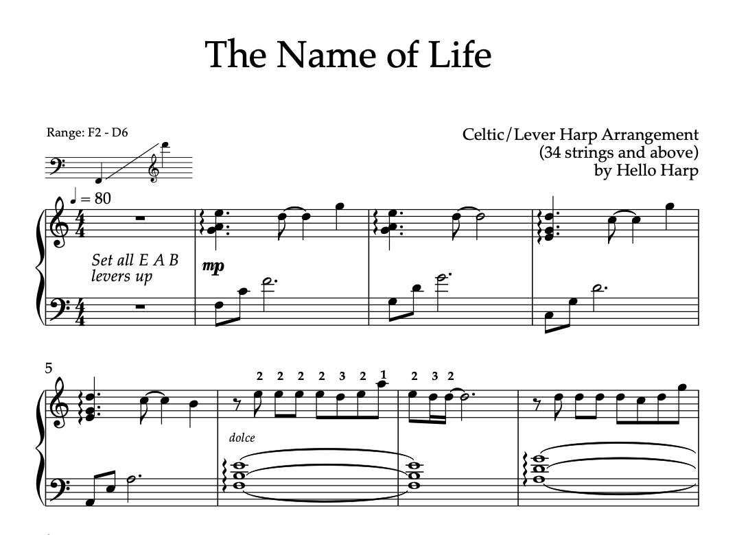 The Name of Life - Spirited Away (Celtic/Lever Harp Sheet Music)