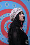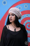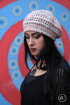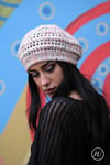 Shown in Qing Fibre Super Soft DK [232yd/212m per 100g; 80% Merino, 10% Cashmere, 10% Nylon]Shown in size 20in/50.75cm on model with 21in/53.25cm circumference head
